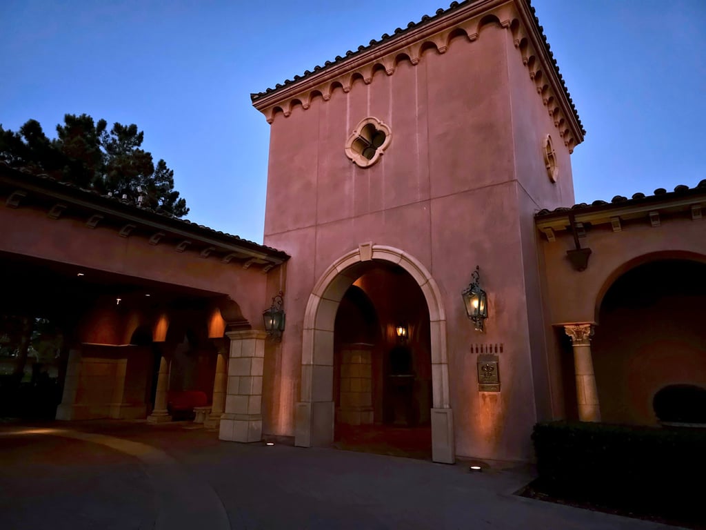 Arriving at the entrance of the Fairmont Grand Del Mar grounds, a private drive leads up the canyon, along one edge of their golf course. With the resort’s main building in the distance, Addison is set across the golf course in a separate building, overlooking its own picturesque views of the surrounding nature. The building itself has a mediterranean-inspired design, and has a striking contrast against the abundant lush greenery of the golf course, with its terra-cotta-pink exterior.