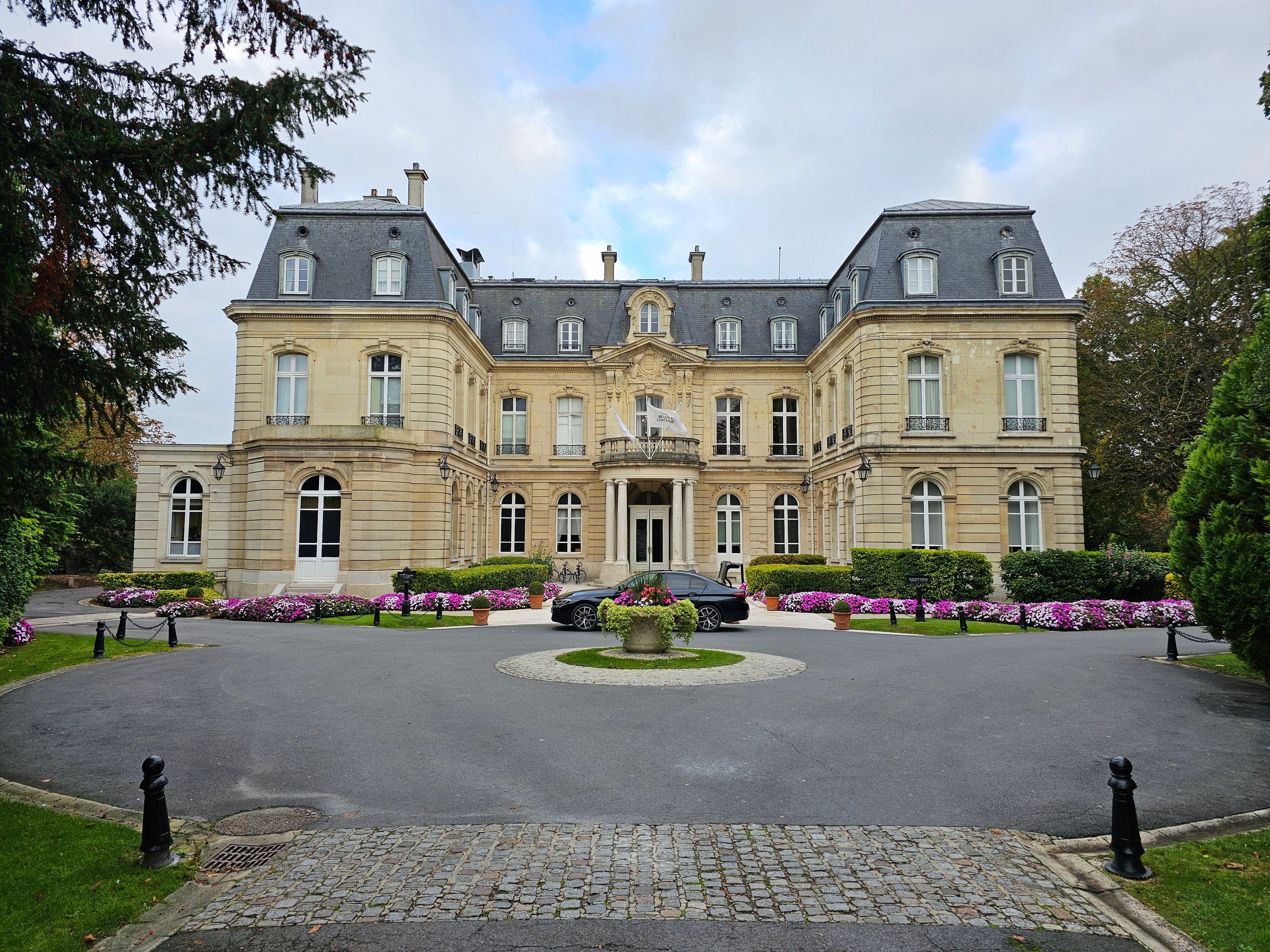 Arriving at the property felt like stepping 100 years back through time, in a great way. The building itself is situated relatively toward the front end of the property, but out back was an expansive, beautifully maintained park, which also lends to the name of the property’s premier 2-Michelin star restaurant, Le Parc. Their other restaurant, a Bib Gourmand winner, is also aptly named Le Jardin. From the back steps of the main building, overlooking the park, you may be able to catch a glimpse of the Reims skyline, including the spires of Basilique Saint-Remi, which is only a short walk away. In the daytime, it would be an idyllic spot for a walk, a picnic, or even a wedding. In the evening, it is the perfect vantage point for a picturesque sunset.