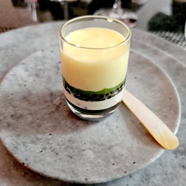 For our visit to Guy Savoy, we opted for the Krug Table, which is the only experience of its kind in the United States - and North America, for that matter. This experience takes you into the kitchen, to a small private dining room that lets you observe the chefs as they work their magic. The whole 9-course meal is served here, unlike some other places where you’re served an appetizer in the kitchen, then escorted out to the main dining room to complete your meal (or vice versa).