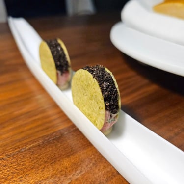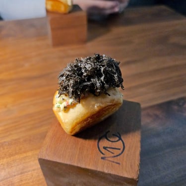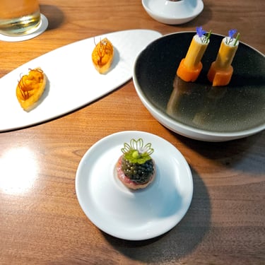 Starting off the pre-menu meal was a collection of small bites, showcasing a variety of flavors and textures. From uni, to smoked salmon, even drilled cheese with black truffle, and of course, caviar. Each bite not only featured different ingredients, but also different varieties of pastry, and completely different preparation. It truly was a medley of flavors and textures to prepare us for what was ahead.