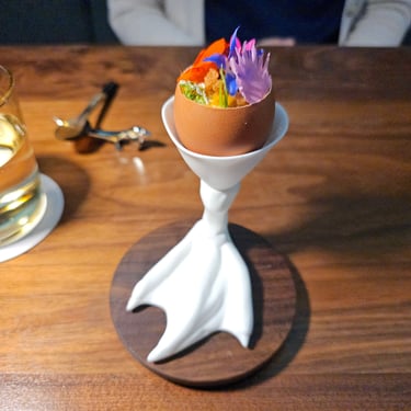 The menu is primarily seafood focused, although a variety of dishes and ingredients are featured throughout the meal. Home-grown ingredients from the rooftop garden are found here and there, depending on what is seasonal, but the house-collected honey and pollen even find their way into the cocktail menu.
