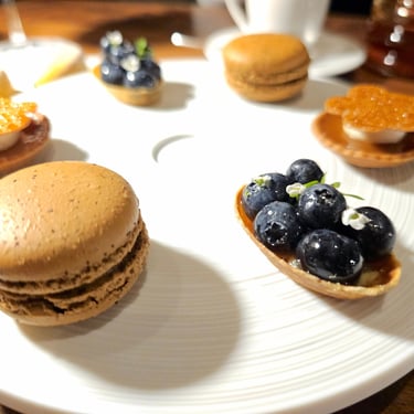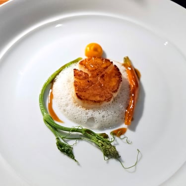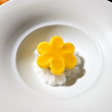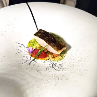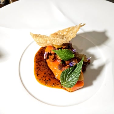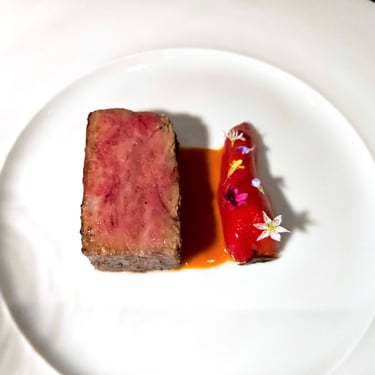 The actual menu started off with oysters, then moved through a variety of seafood and other shellfish, before arriving at the main course. Throughout this initial segment of the meal, the ingredients seemed relatively summer-focused, especially the accoutrements, which consistently featured small flowers or bright-colored herbs and vegetables that added a vibrant visual appeal to each dish. The plating, however, remained relatively straightforward, featuring protein on top of a well-constructed and flavorful sauce, all arranged with meticulous precision upon the plate.